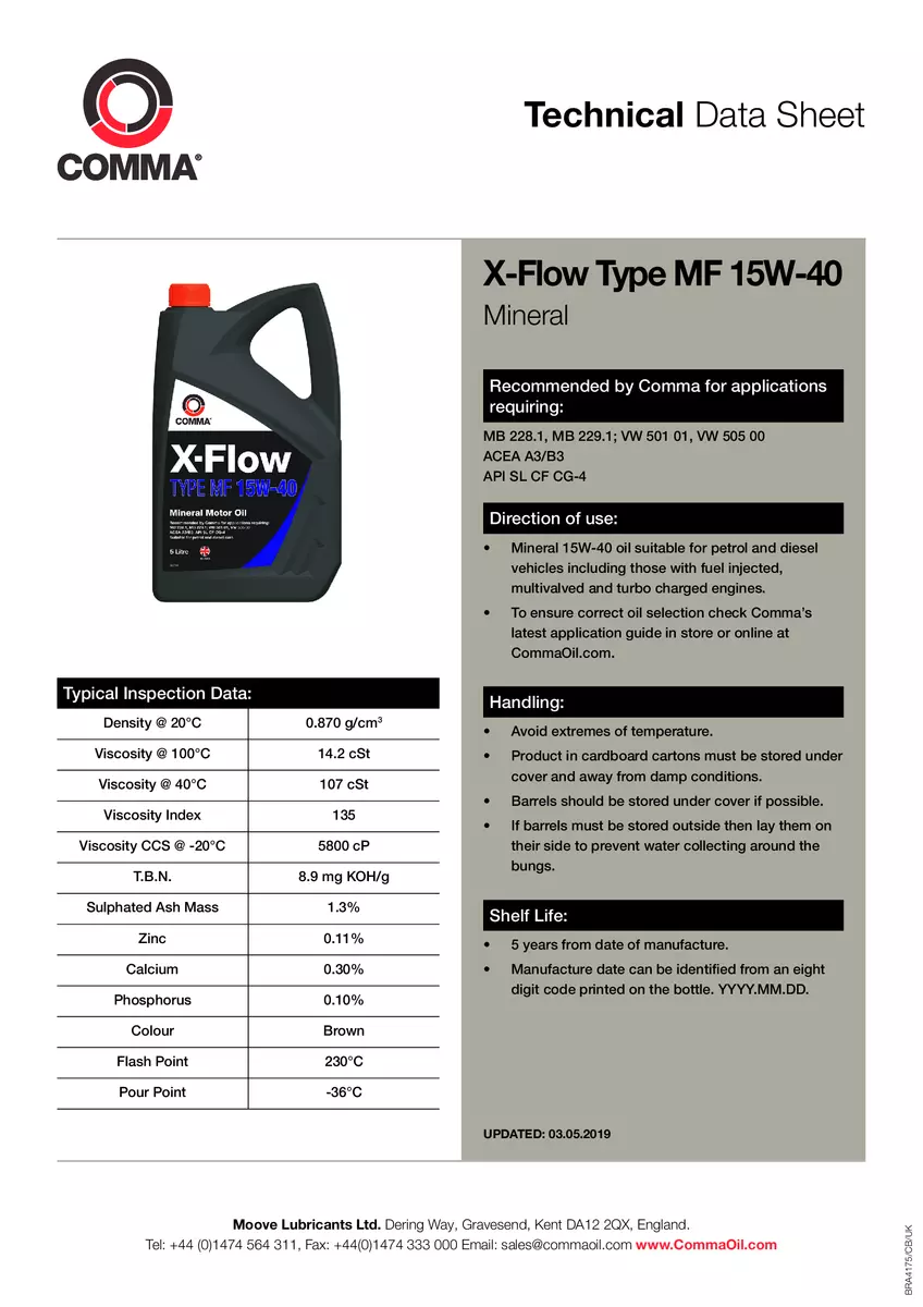 Моторное масло Сomma X-FLOW TYPE MF 15W40 API SL/CF/CG-4; ACEA