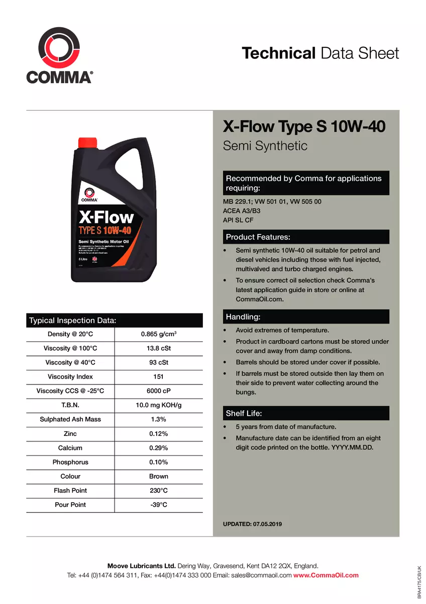 Моторное масло Сomma X-FLOW TYPE S 10W-40 API SL/CF; ACEA A3/B3 1л (12шт/уп)