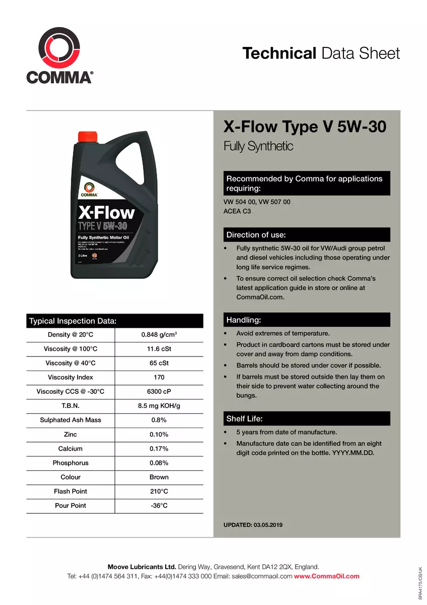 Моторное масло Сomma X-FLOW TYPE V 5W30 ACEA C3 4л (4шт/уп)