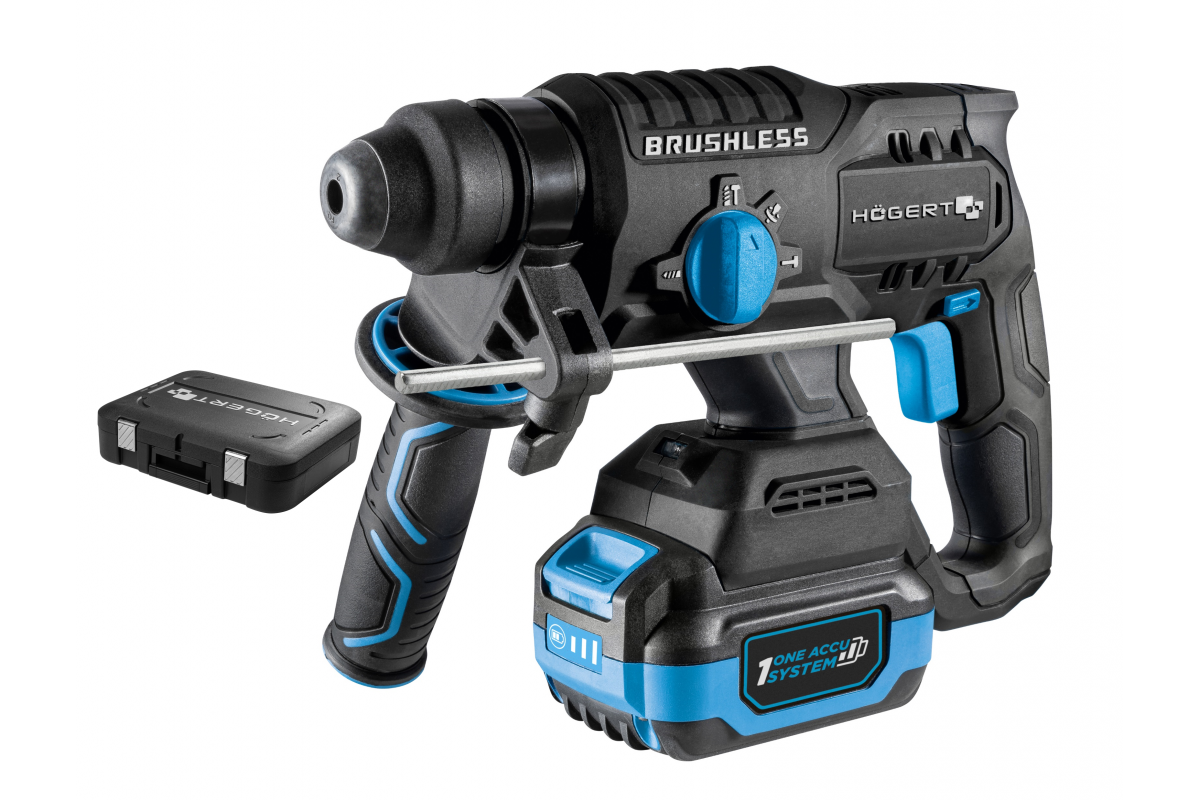 Набор Аккумуляторный бесщеточный перфоратор 18В + 2 аккумулятора 4Ач + зарядная станция 4А+ кейс (HT