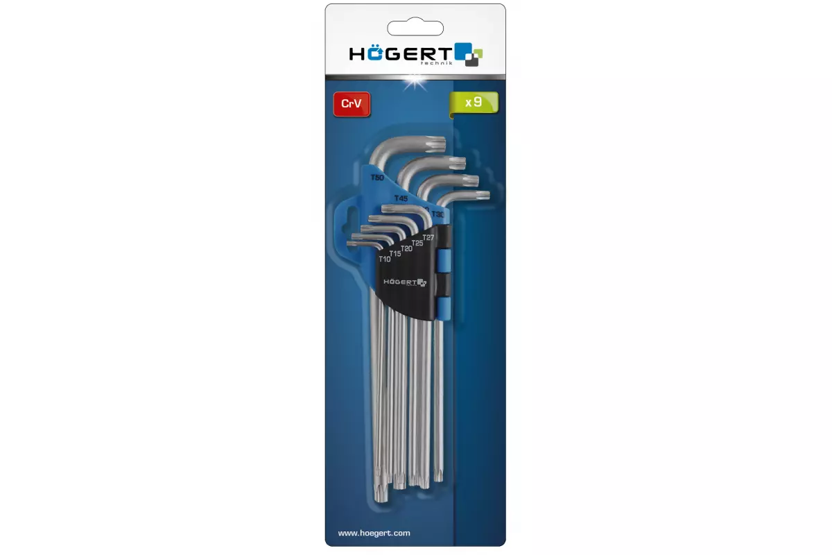 Набор Г-образных удлиненных ключей TORX, Т10-Т50, 9 шт. (HT1W818)