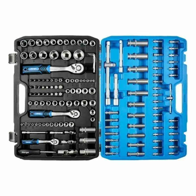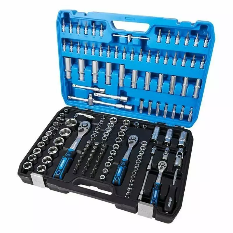 Набор инструментов Molder MT60151 на 151 предмет — это идеальное решение для автосервиса, мастерской или бытового ремонта. Широкий ассортимент торцевых головок, удлинённых и стандартных насадок, бит, ключей и аксессуаров делает комплект универсальным для любых слесарных, монтажных и автомобильных работ. Все инструменты изготовлены из хромованадиевой стали CrV, что гарантирует высокую прочность, стойкость к износу и защиту от коррозии. Комплект поставляется в прочном пластиковом кейсе, который обеспечивает надёжное хранение и удобство транспортировки.