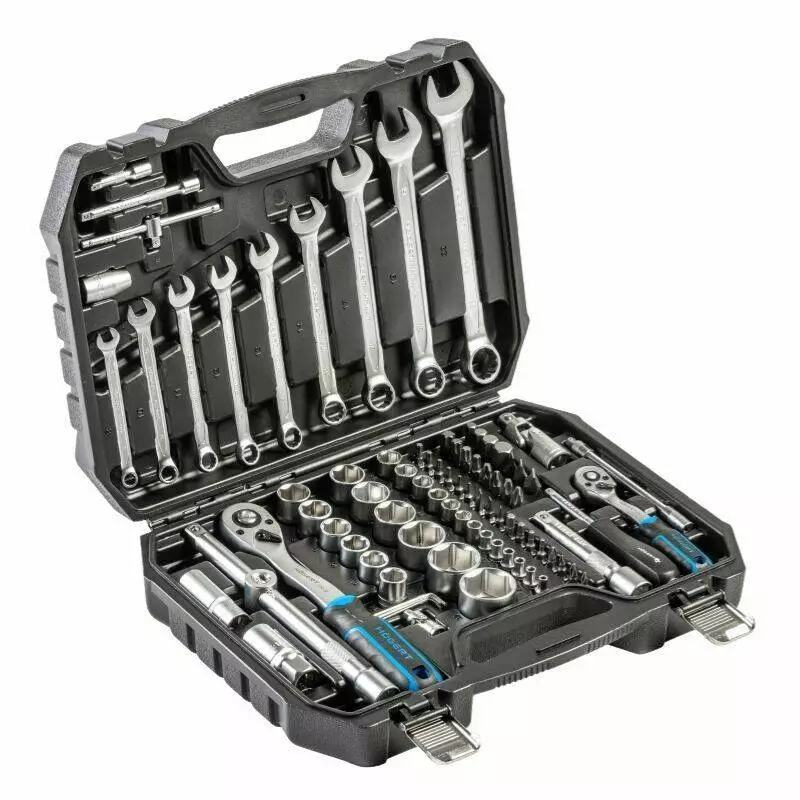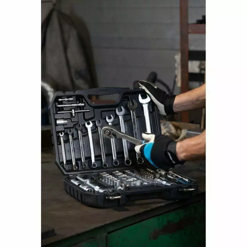 Система 1/2” и 1/4” охватывает широкий диапазон операций — от работы с легковыми авто до обслуживания более габаритной техники. Набор позволяет выполнять сборку, разборку, ремонт и техническое обслуживание без необходимости в дополнительном инструменте.