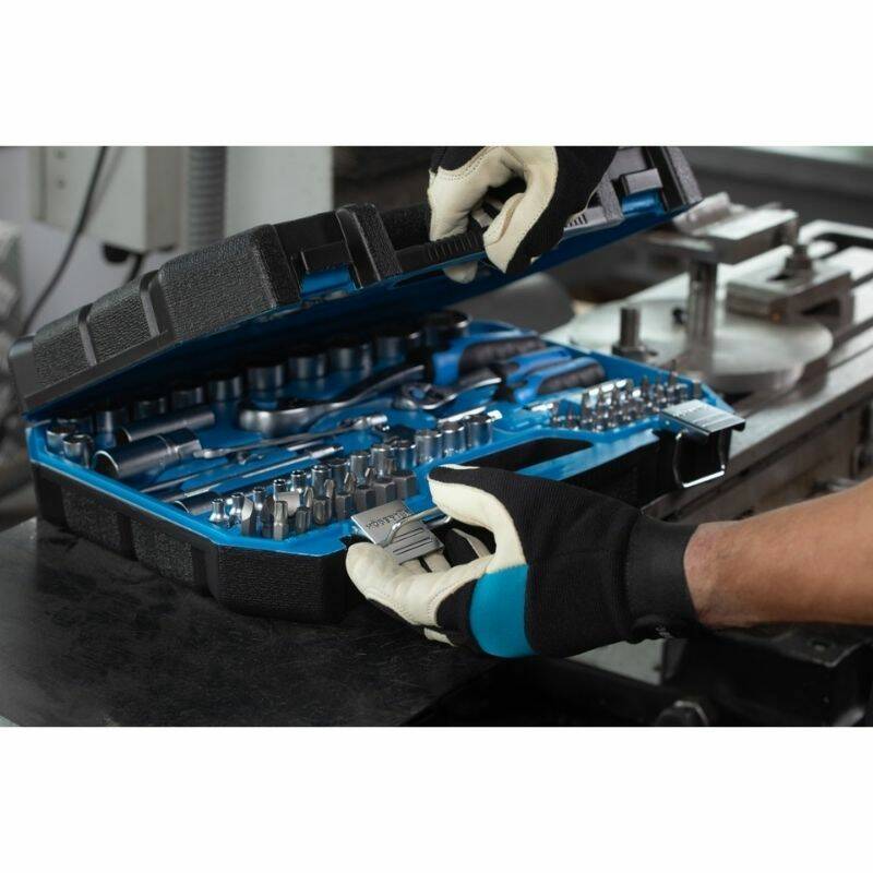 Вес набора составляет 6,63 кг – это оптимальный баланс между мобильностью и содержательностью. Эргономичные ручки и надежные трещотки обеспечивают комфортную работу в течение долгого времени.