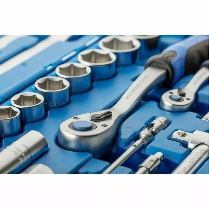 Инструментальный набор Hogert HT1R425 из 85 предметов создан для тех, кто ценит надежность, практичность и широкий функционал в одном решении. Подходит для автосервисов, гаражей, СТО и домашних мастерских. В комплект входят комбинированные ключи, свечные головки, трещотки, гибкие и жесткие удлинители, карданные шарниры и обширный набор бит. Все размещено в удобном пластиковом кейсе, что обеспечивает порядок и защиту инструментов.