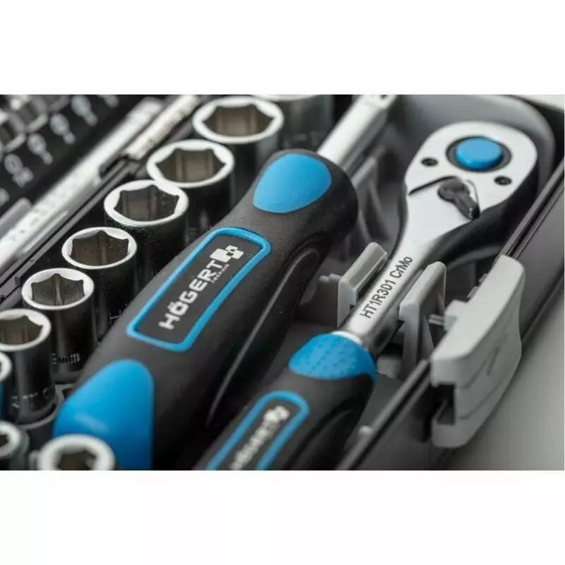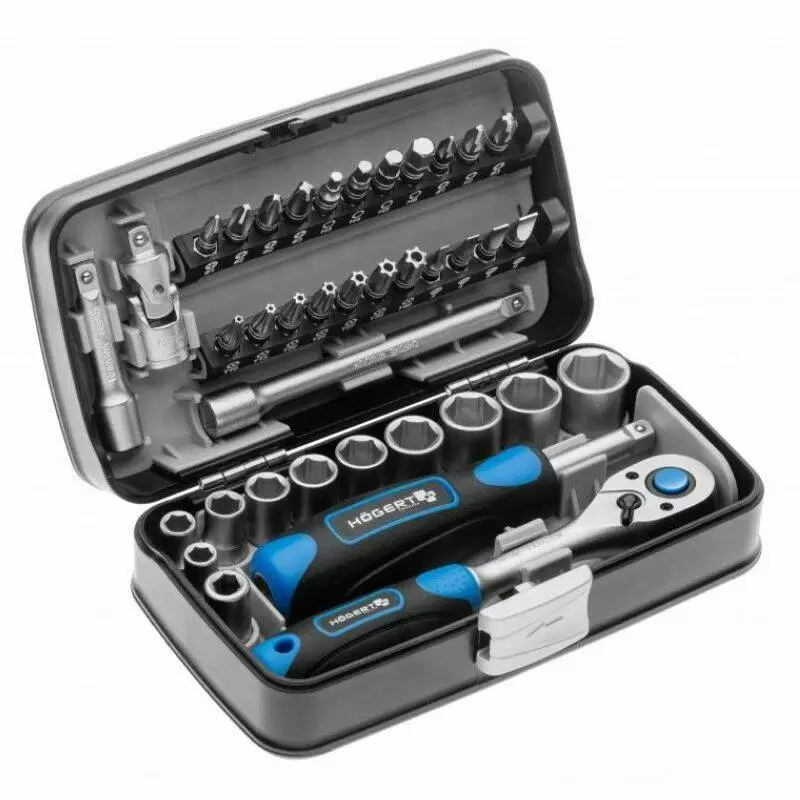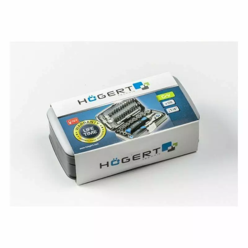 Набор инструментов 1/4" 38шт CrV CrMo сталь S2 Hogert в кейсе (HT1R462)