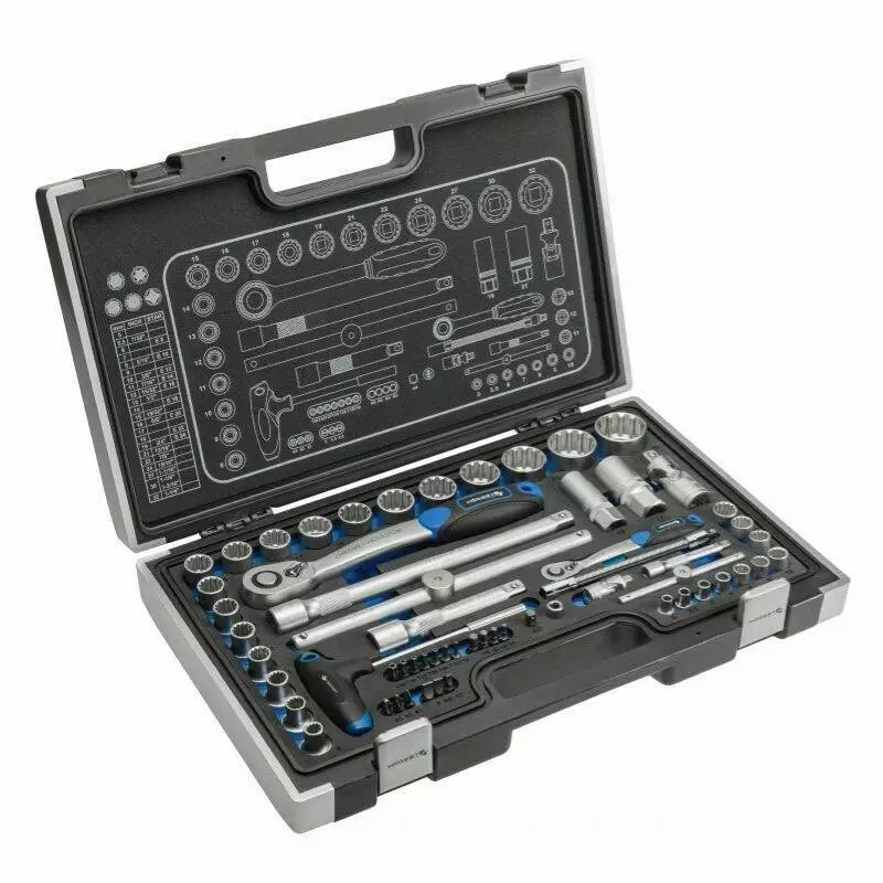 Набор инструментов 60шт 1/2" 1/4" CrV CrMo сталь S2 Hogert в кейсе (HT1R470)