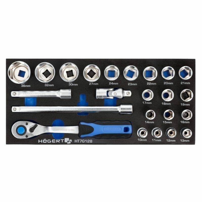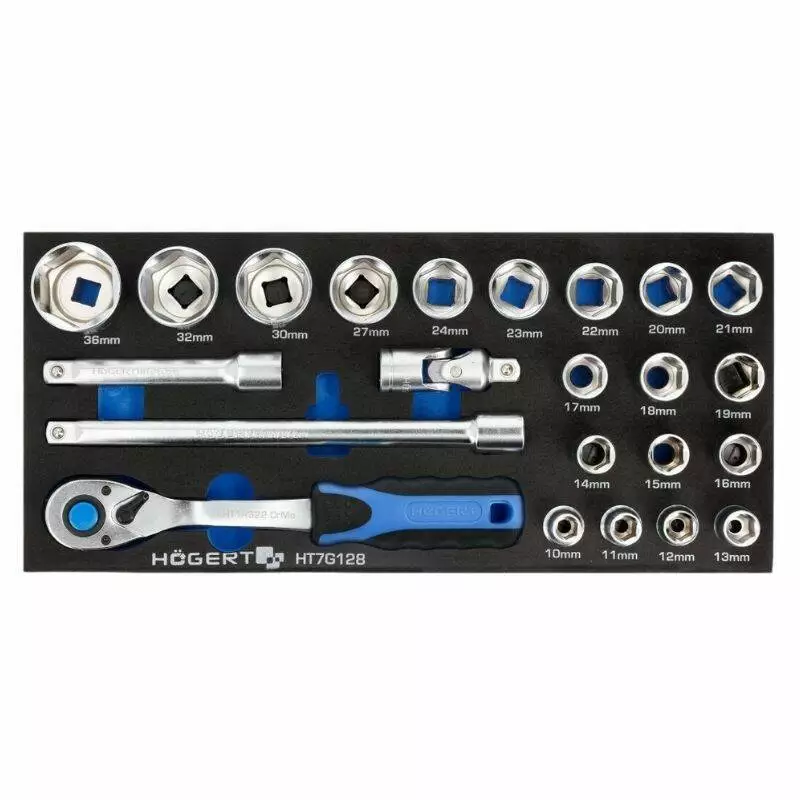 Набор инструментов с трещоткой 1/2" 23 шт Hogert EVA (HT7G128) – функциональный ложемент
