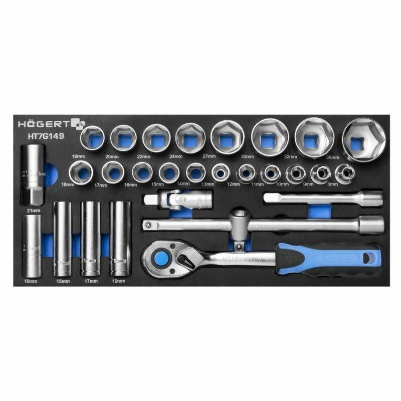 Ложемент Hogert Eva с набором инструментов 1/2 дюйма 28 предметов с трещеткой HT7G149