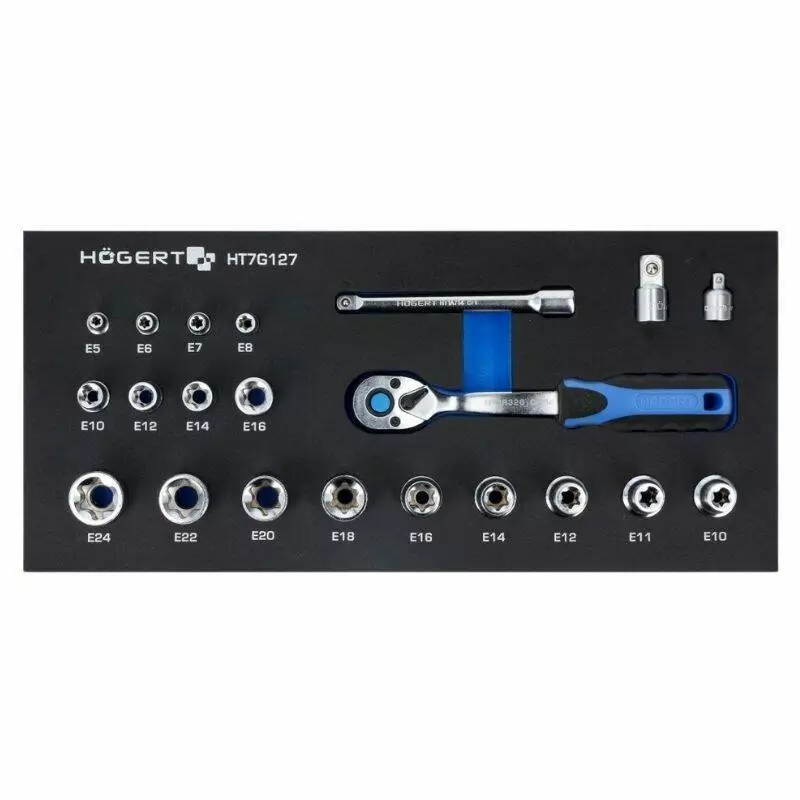 Набор инструментов с трещоткой 3/8", 22 шт., ложемент Eva Hogert (HT7G127) – универсальный комплект для работы