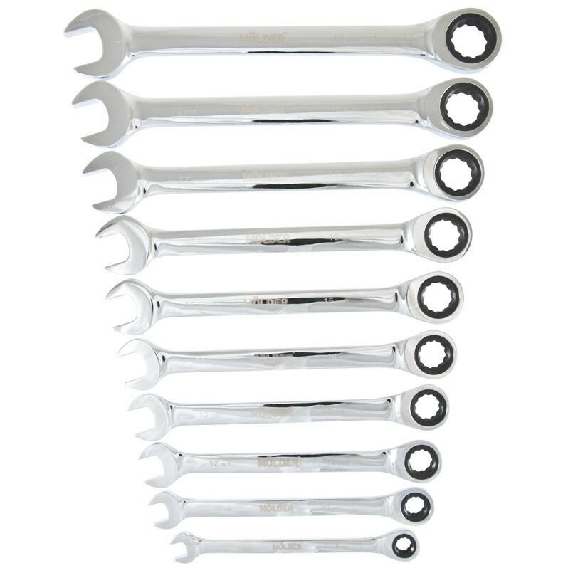 Набор комбинированных ключей MOLDER с трещоткой CR-V 8-19 мм 10 шт (MT56110)
