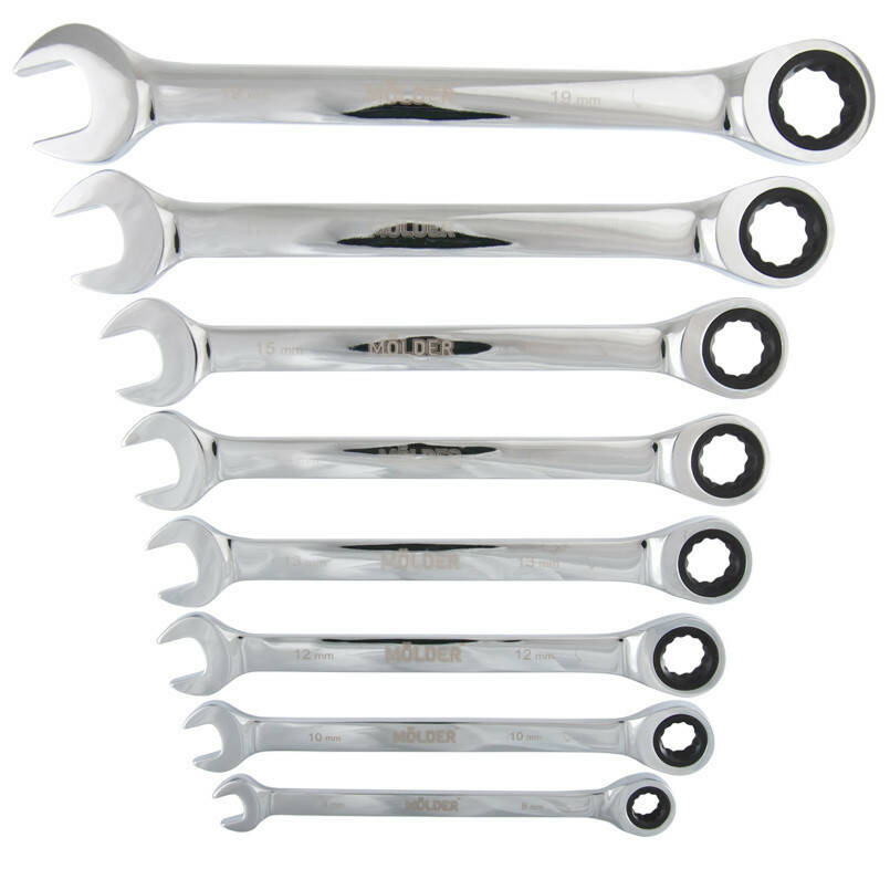 Набор комбинированных ключей MOLDER с трещоткой CR-V 8-19 мм 8 шт (MT56108)