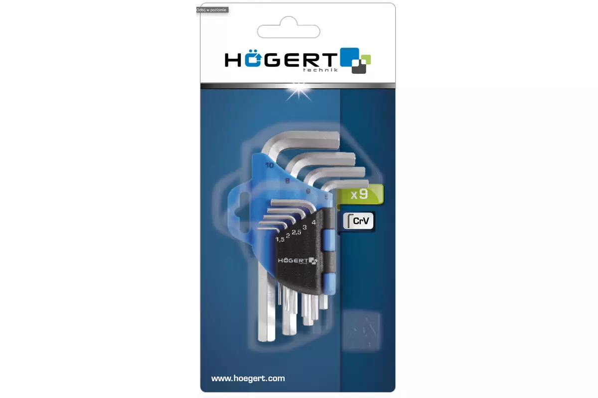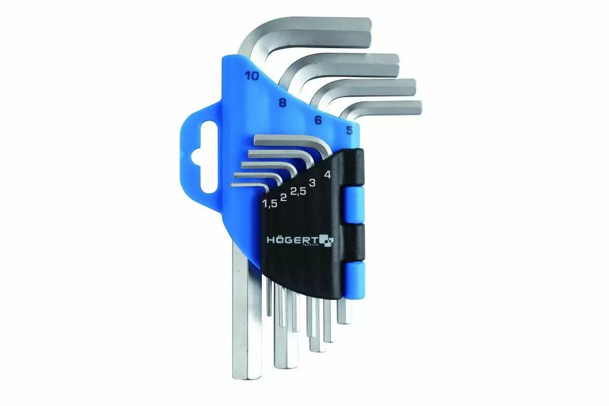 Набор коротких шестигранных Г-образных ключей 1,5-10 мм, CrV, 9 шт.