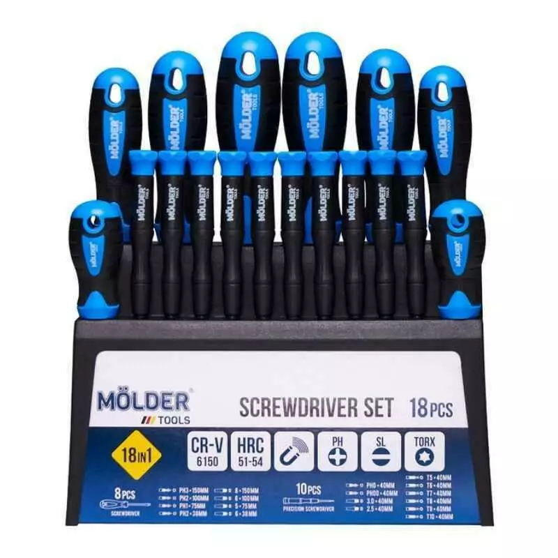 Набор отверток 18шт CrV 6150 Molder с магнитным захватом PH SL Torx