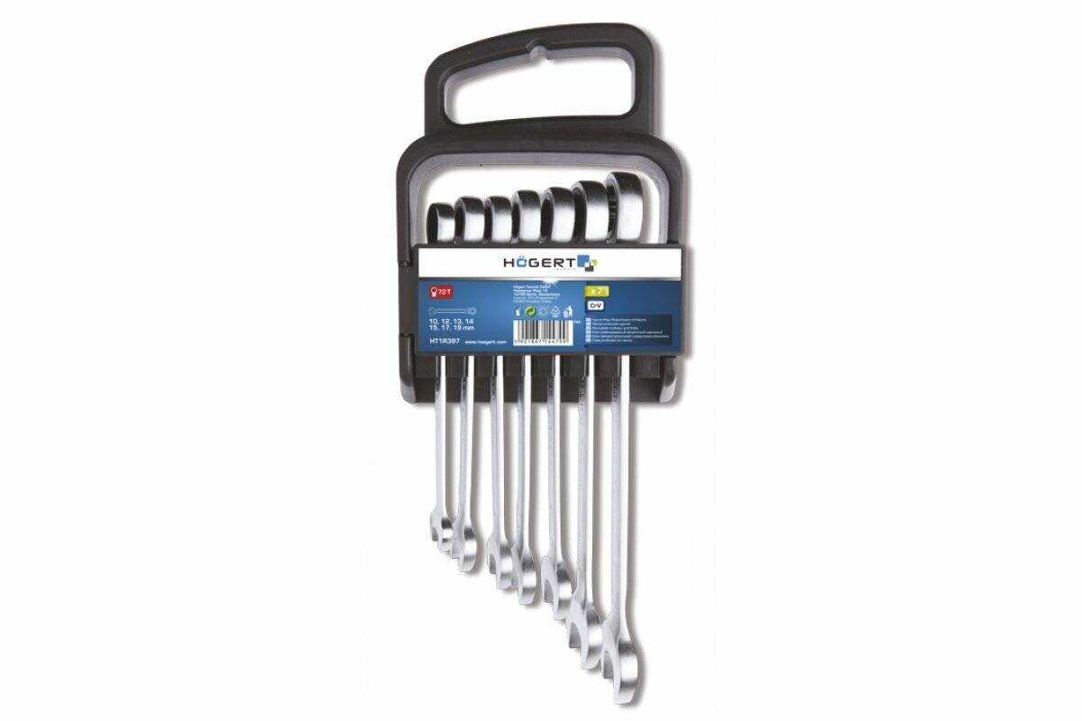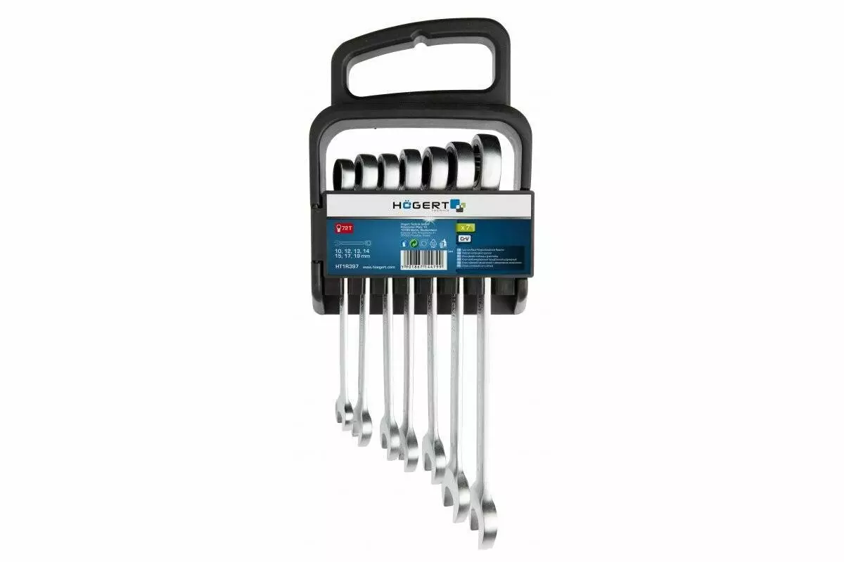 Набор рожково-накидных ключей c трещоткой, 10-19 мм, 7 шт., 72T, сталь CrV 6140 (HT1R397)