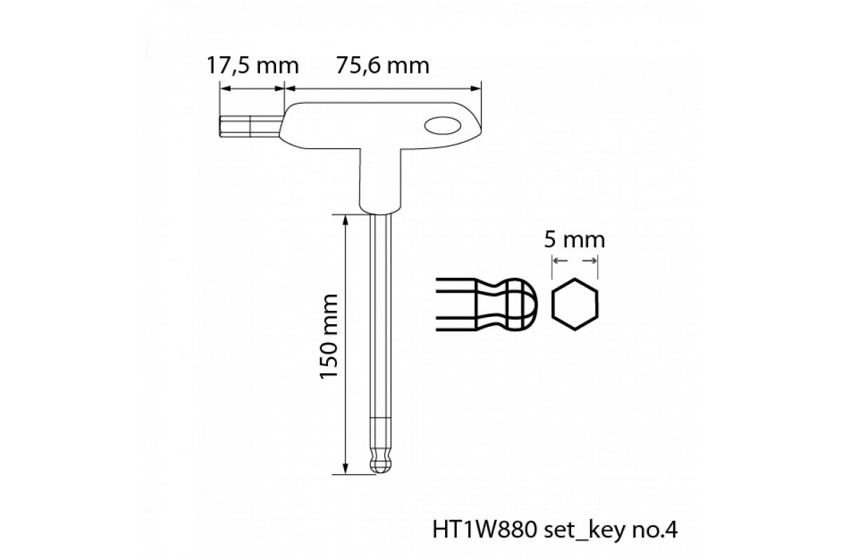 Набор шестигранных ключей тип "Т" с шаровым наконечником 8 шт (HT1W880)