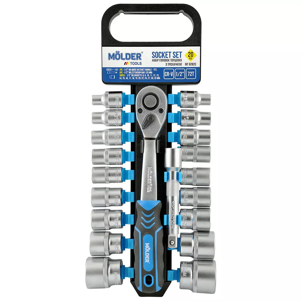 Набор торцевых головок с трещ. и удлин. Molder 1/2" 72Т, CR-V, 8-32 мм, 20шт