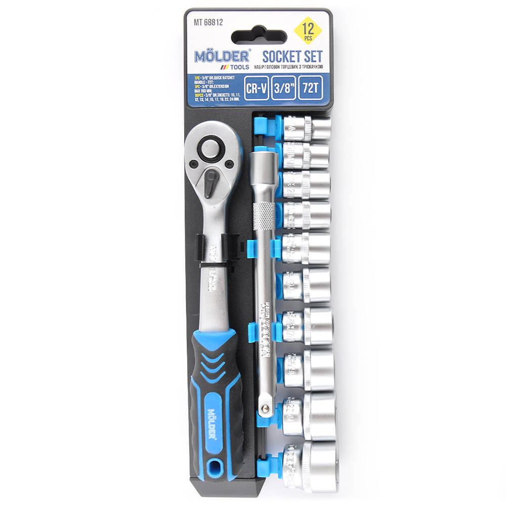Набор торцевых головок с трещ. и удлин. Molder 3/8" 72Т, CR-V, 10-24 мм, 12шт
