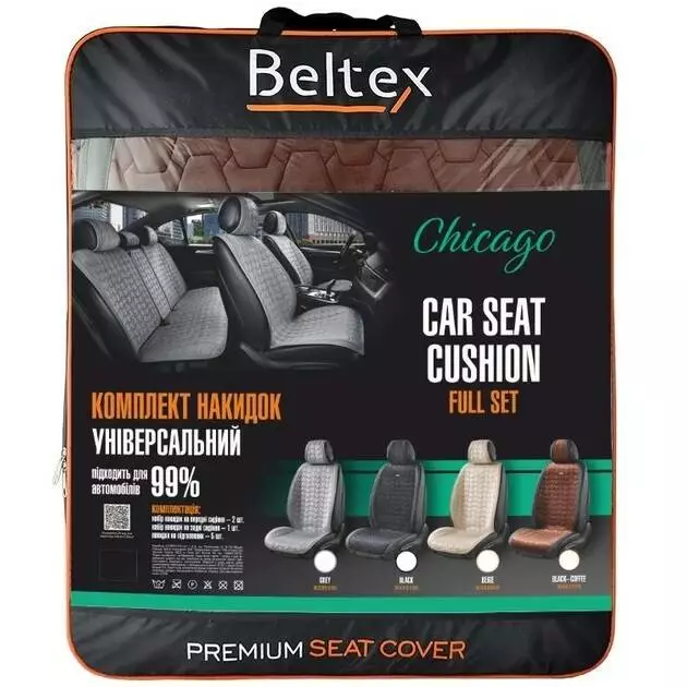 Накидки на сиденья авто премиум передние и задние премиум класса Beltex Chicago комплект черно-кофейный (BX85120)