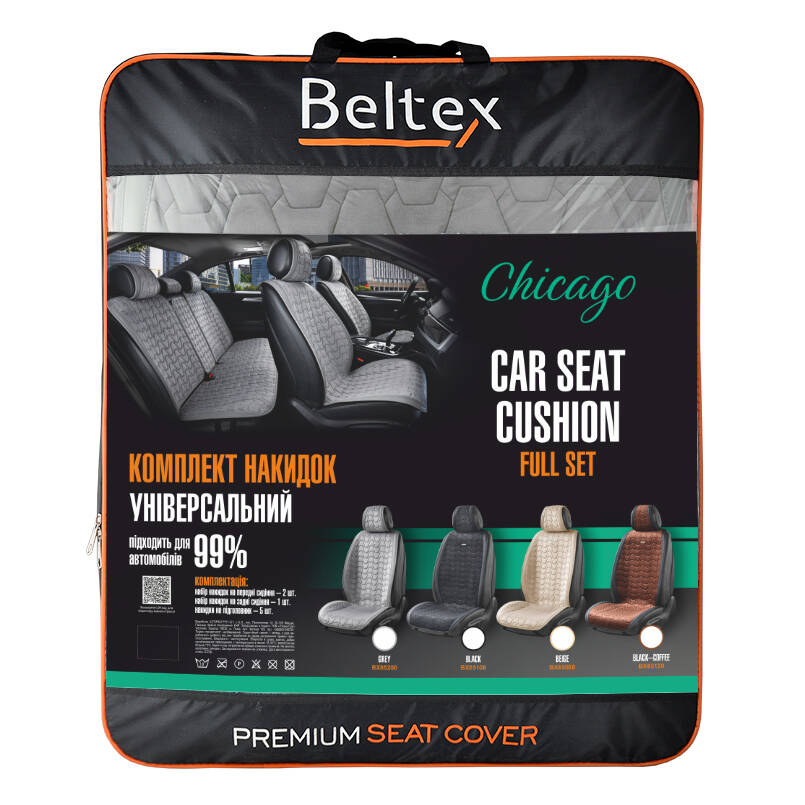 Накидки на сиденья авто премиум передние и задние премиум класса Beltex Chicago комплект серый (BX85200)