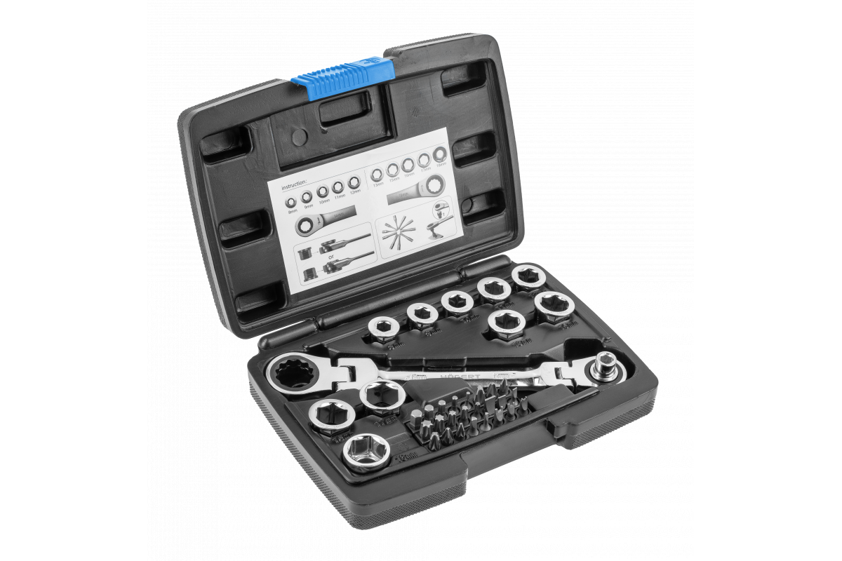 Накидной ключ с трещотками и шарниром, 36 насадок (HT1R491)