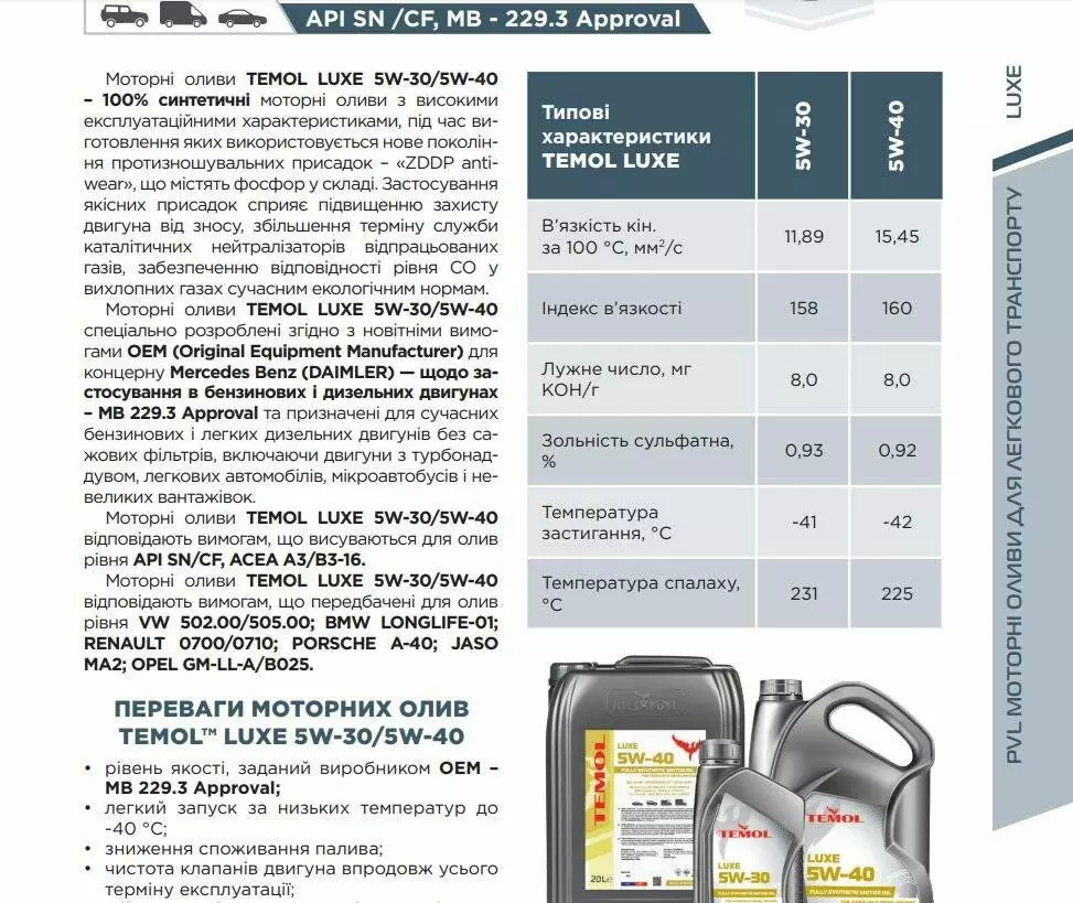Олива TEMOL Luxe 5W-30 API SN,API CF,АСЕА A3/B4-16 (1 л)