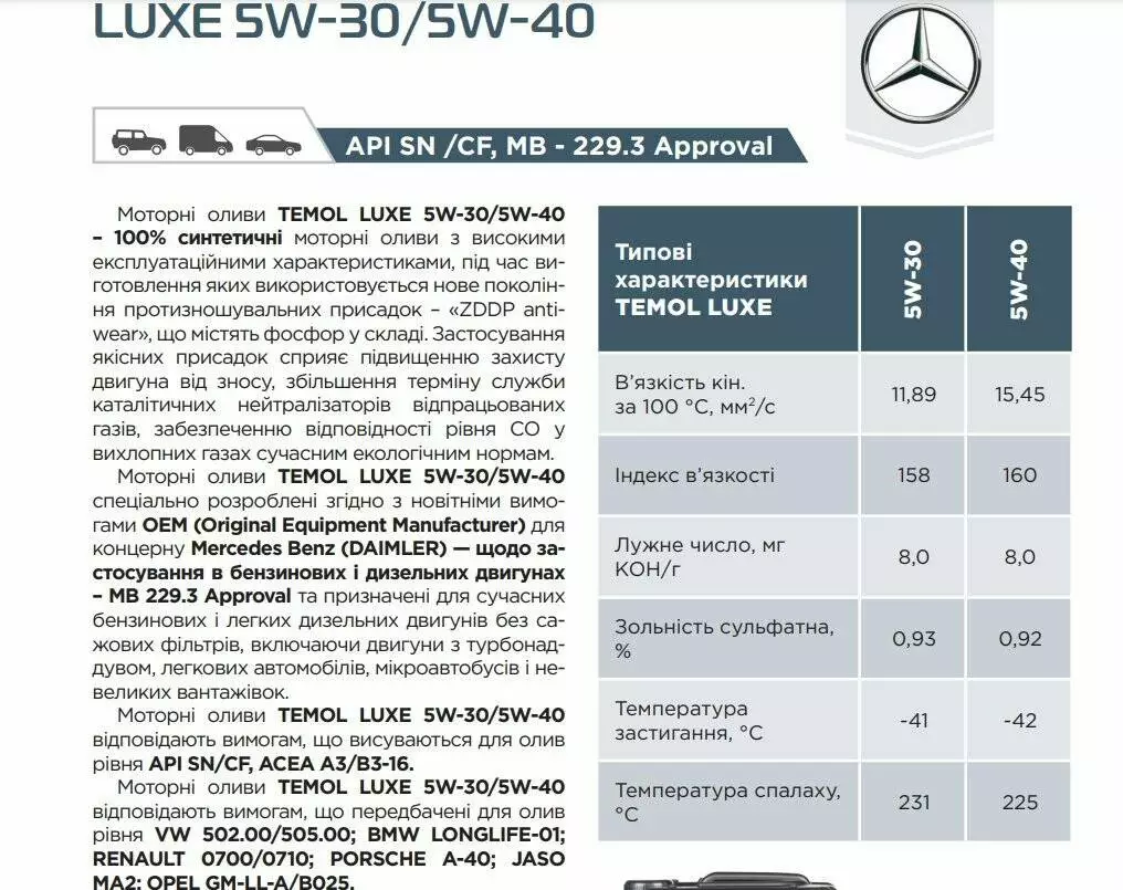 Олива TEMOL Luxe 5W-40 API SN,API SM,API CF,ACEA A3/B4-16 (1 л)