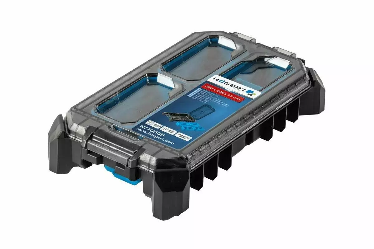 Благодаря шести вместительным отделениям, органайзер для инструментов Hogert HT7G505 позволяет быстро находить нужный элемент. Корпус из пластика выдерживает удары и сохраняет форму даже при регулярном использовании. Защита от воды и пыли становится преимуществом для хранения расходных материалов и мелких деталей.
