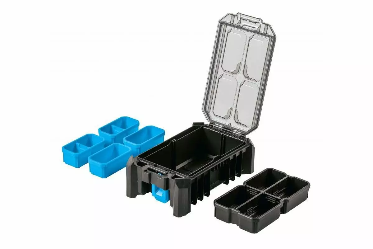 Этот органайзер имеет продуманную конструкцию для удобного размещения различных мелочей. Отсеки легко открываются, не сдвигаются и не высыпают содержимое. Корпус ударостойкий, не боится механического воздействия и царапин. Благодаря модульной совместимости можно объединять несколько органайзеров в единую систему для хранения.