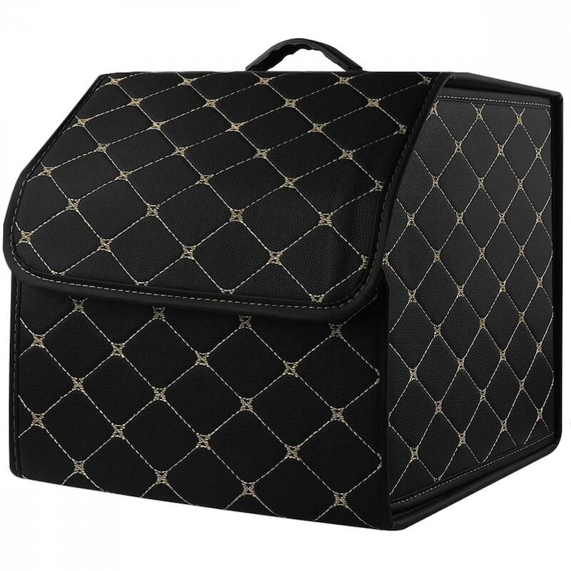 Органайзер в багажник автомобиля 34см*30см*30см черный с бежевой строчкой