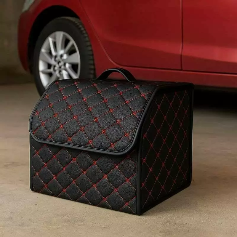 Органайзер в багажник автомобиля 34см*30см*30см черный с красной строчкой