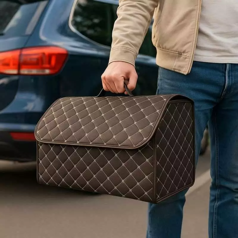 Органайзер в багажник автомобиля 54см*30см*30см коричневый с бежевой строчкой