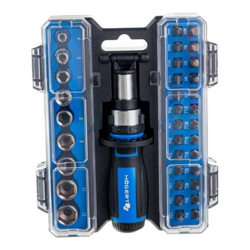 Отвертка реверсивная с битами 36шт Hogert сталь S2 с магнитным захватом PH PZ SL Torx Hex (HT1S101)