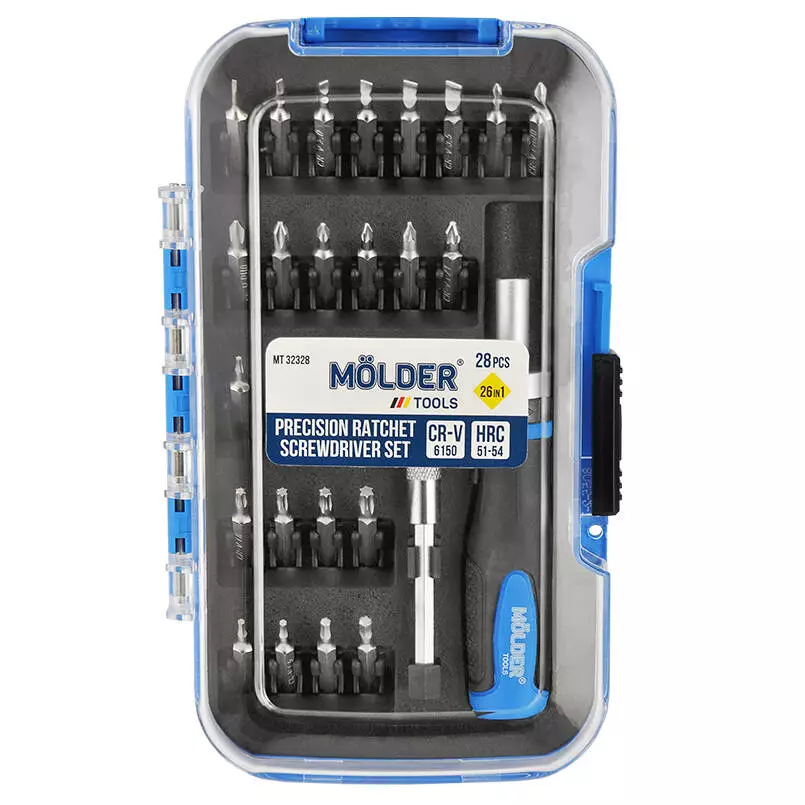 Отвертка реверсивная с комплектом насадок для точных работ Molder, 28 шт