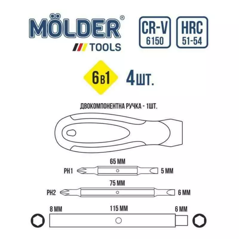 Отвертка со сменными насадками Molder, 6 в 1 (6шт/уп)