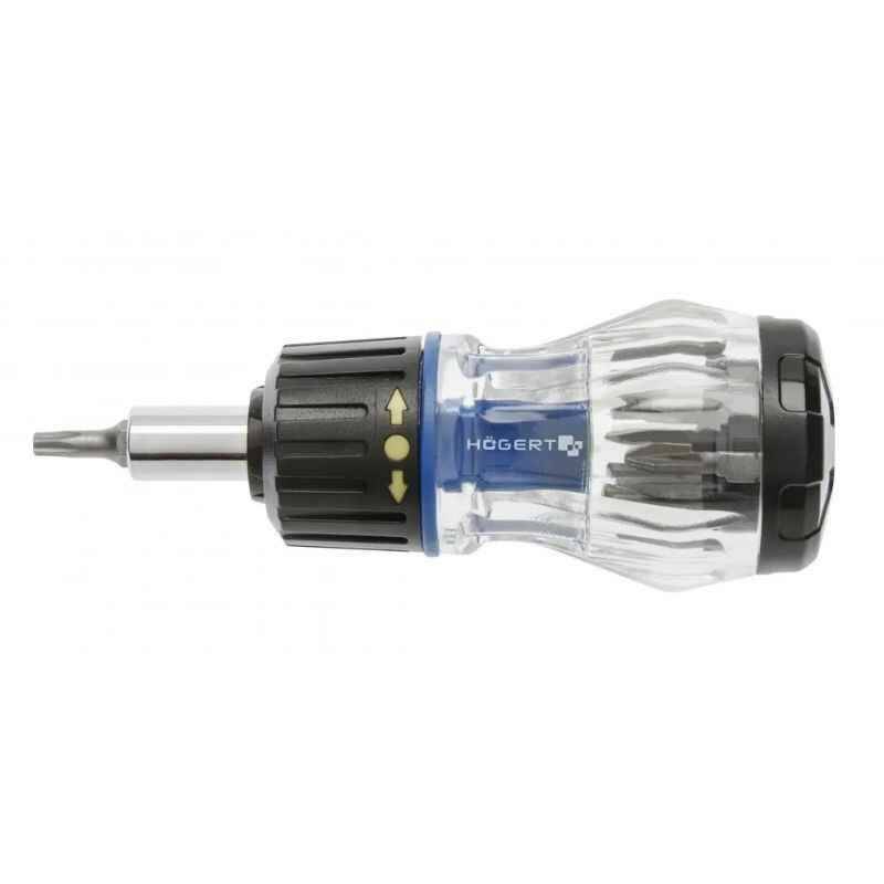 Отвертка с реверсивной рукояткой и сменными насадками 8 пр. Hogert (HT1S214)