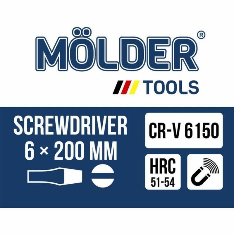 Отвертка шлицевая Molder, SL6x200mm (12шт/уп)