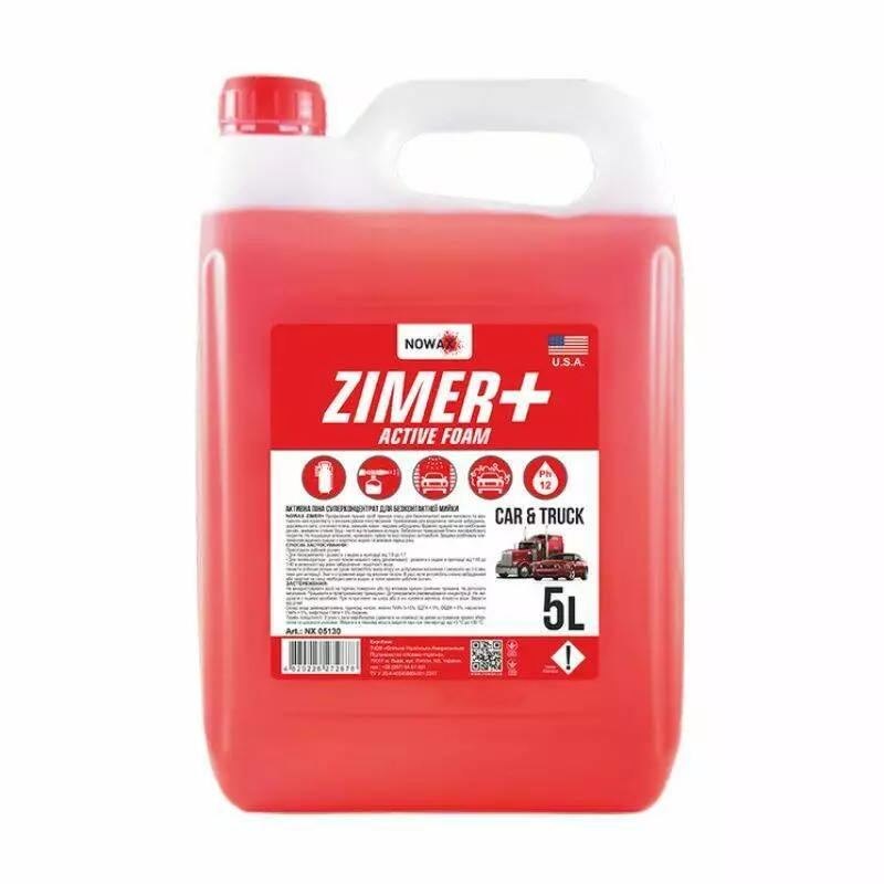 NOWAX ZIMER + Профессиональноещелочное средство премиум класса для бесконтактной мойки легкового и грузового автотранспорта с высоким уровнем пенообразования. Предназначено для удаления сильных загрязнений, дорожной пыли, статической пленки, остатков насекомых и жировых загрязнений.