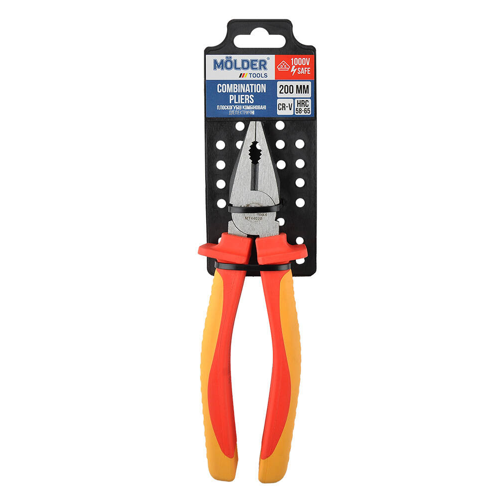 Плоскогубці комбіновані діелекричні MOLDER 200мм, VDE 1000В, 60Cr-V, HRC 58-65, поліровані (48шт/ящ)
