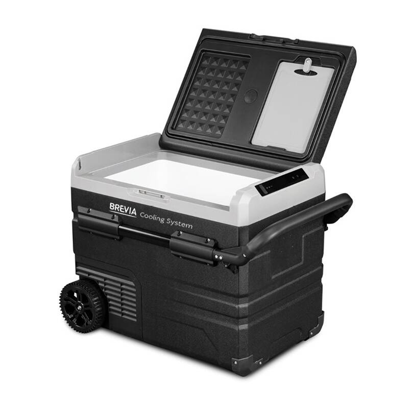 Портативный автохолодильник компрессорный 60л BREVIA на колесах с автономной работой пластиковый 12/24В 220В (22640)