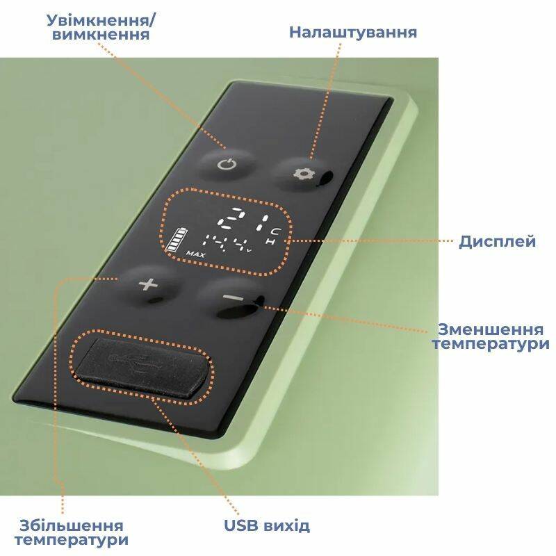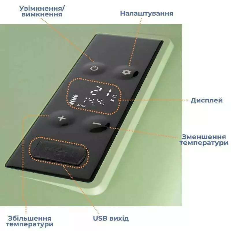 Сенсорная панель управления с LCD-дисплеем позволяет точно установить необходимую температуру. Встроенные индикаторы отображают статус охлаждения, заряд, температуру и работу устройства.