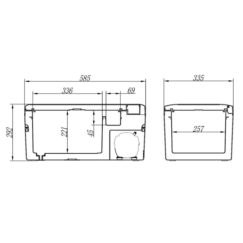 - Внешние габариты ШхВхГ, мм: 585x292x335