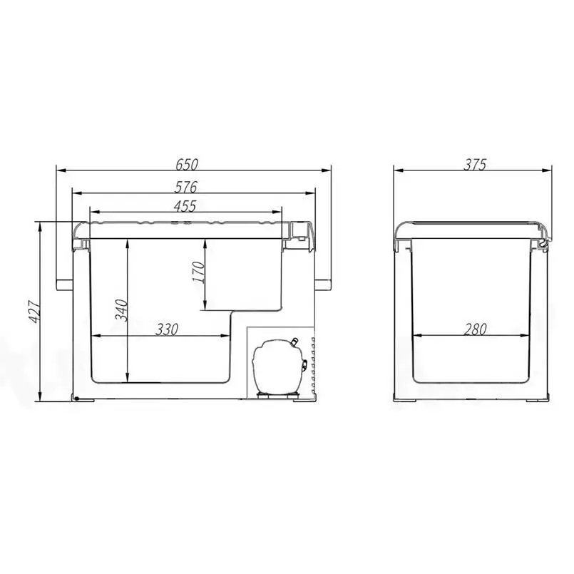 - Внешние габариты ШхВхГ, мм: 650x427x375