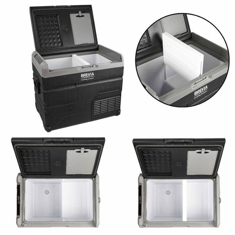 Портативный холодильник 56л BREVIA двухкамерный автохолодильник компрессорный пластиковый 12/24В 220В с LG-компрессором (22670)