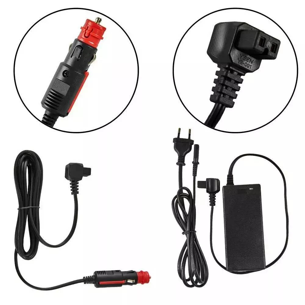 - Работа от 12/24 В и 220 В: Холодильник поддерживает два вида питания: от автомобильного прикуривателя 12/24 В и от стандартной сети 220 В через адаптер. Это делает его отличным выбором как для поездок, так и для стационарного использования.