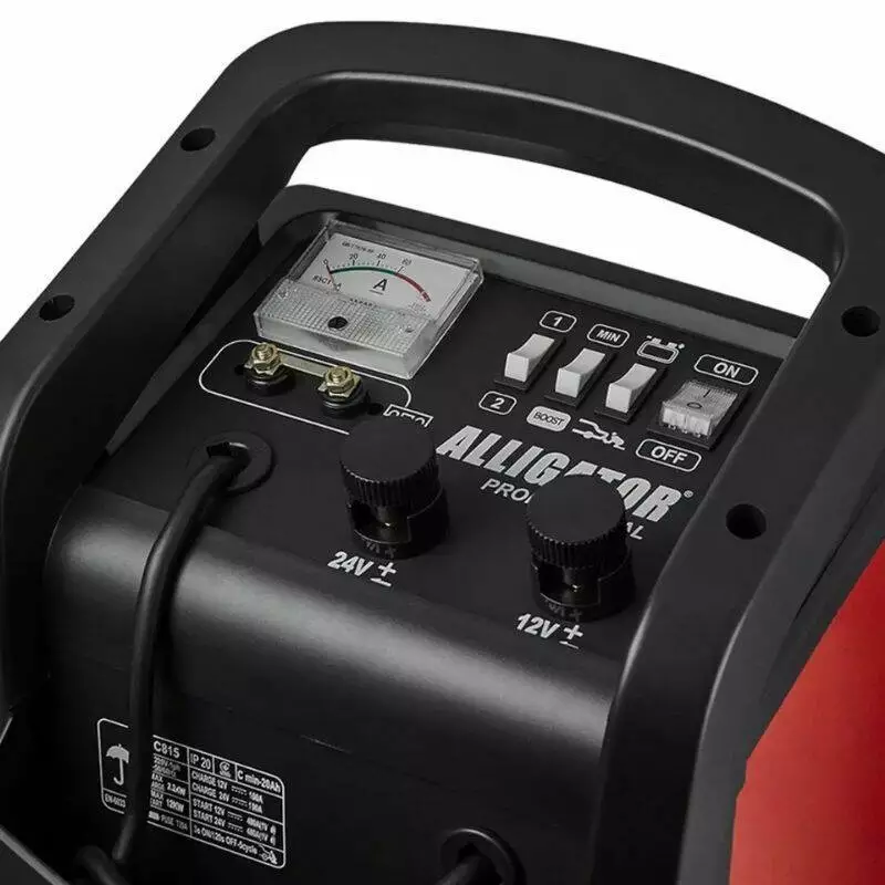Пуско-зарядное устройство Alligator AC815 – это профессиональный прибор, созданный для зарядки и запуска как 12-вольтовых, так и 24-вольтовых свинцово-кислотных аккумуляторов. Благодаря своим широким функциональным возможностям, оно подходит как для стандартных, так и для тяжелых и разряженных аккумуляторов, что делает его незаменимым помощником для автомобилистов и специалистов по обслуживанию автотранспорта.
