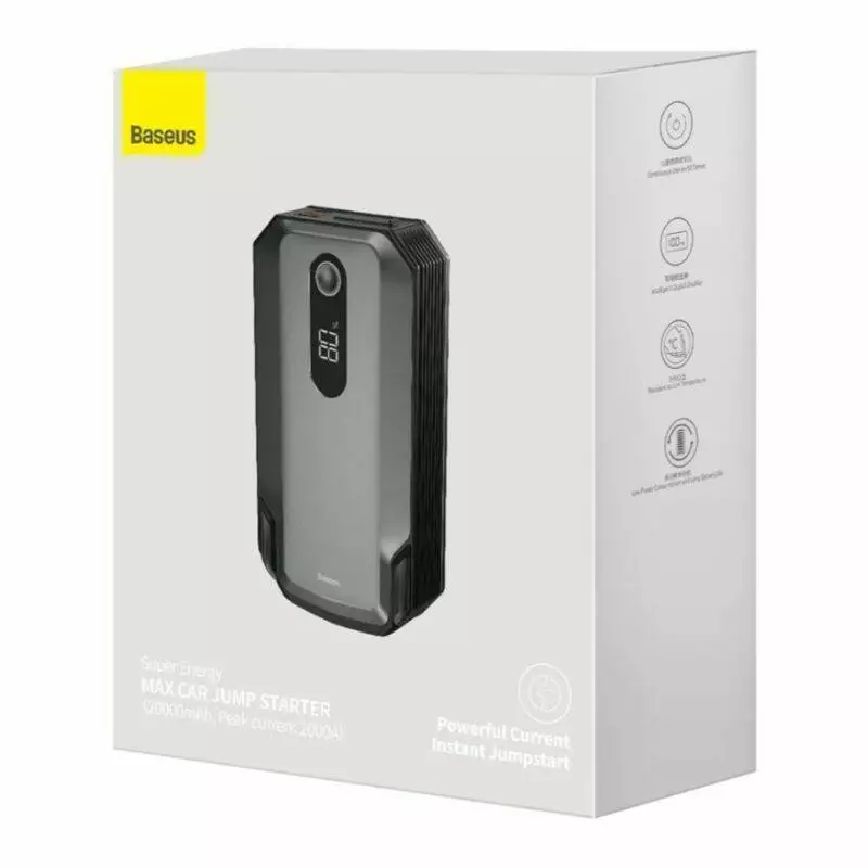 Пусковое зарядное устройство Baseus Jump Starter 20000мАч — это мощный и надежный инструмент, предназначенный для автолюбителей, которые ценят безопасность и уверенность в любых условиях. Этот джамп-стартер гарантирует, что вы никогда не останетесь без помощи на дороге благодаря своим выдающимся характеристикам и современному дизайну.