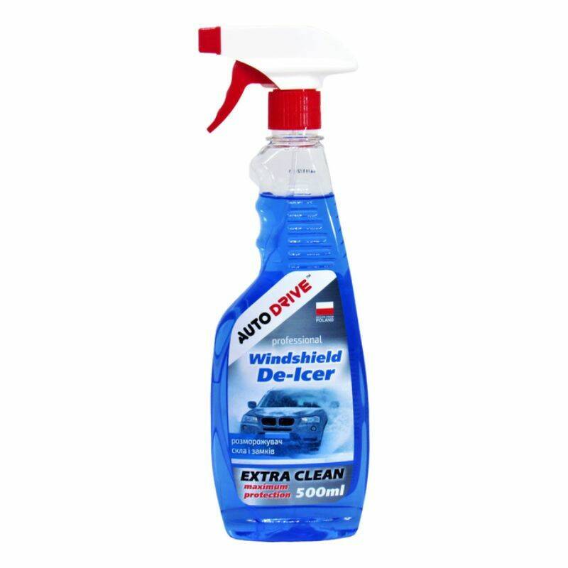 Размораживатель стекла и замков AUTO DRIVE Windshield de-lcer 500 мл AD0051 - средство для быстрой и качественной очистки лобового стекла, фар и замков от снега и льда. Способствует хорошему обзору и повышению безопасности движения. Обеспечивает плавное скольжение стеклоочистителя не оставляя разводов и следов на поверхности лобового стекла.
