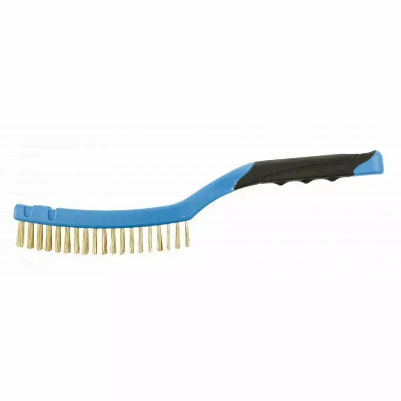 Щетка имеет удобную ручку, которая помогает держать инструмент уверенно даже при длительном использовании. Три ряда латунного проволоки обеспечивают эффективную очистку. Каждый ряд содержит 19 пучков проволоки. Благодаря использованию латуни, щетка подходит для работы с мягкими металлами и деликатными поверхностями.