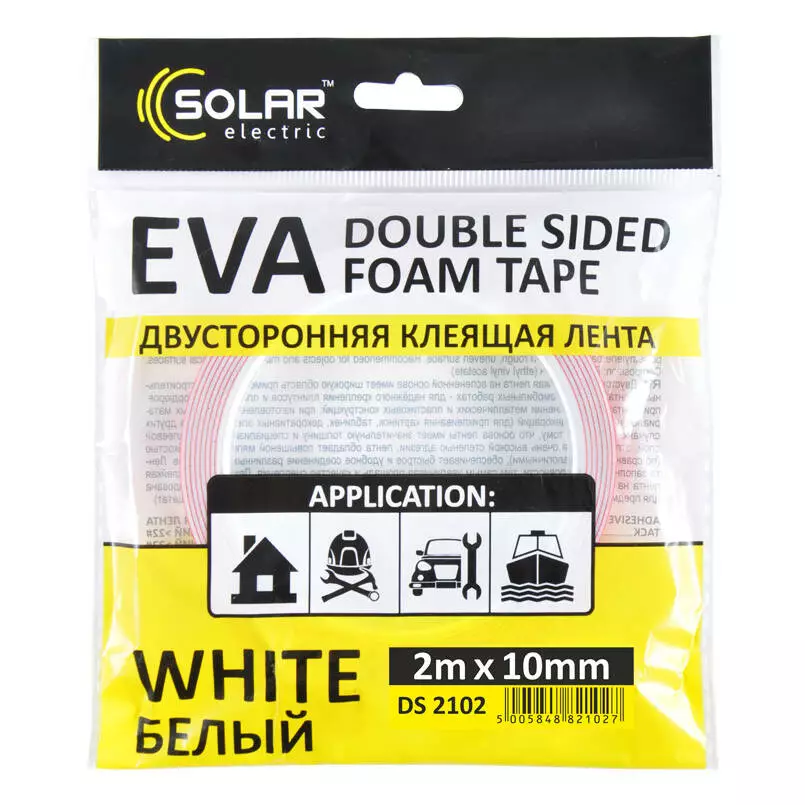 Скотч двусторонний SOLAR (DS2102) белый EVA 2м x 10мм